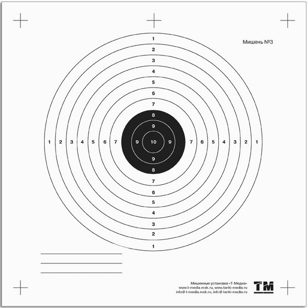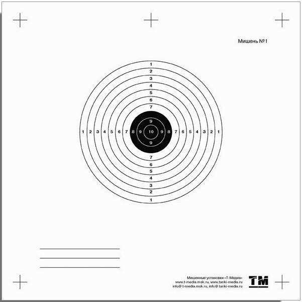 Неподготовленному стрелку очень сложно не только набрать требуемое для присвоения спортивного разряда или спортивного звания очков, но даже просто попасть в мишень диаметром 45 мм. Поэтому компания "Т-Медиа" разработала свои мишени, отличающиеся от приведенных выше увеличенными размерами. Диаметр мишени "Т-Медиа" для стрельбы из пневматической винтовки на дистанцию 10 м равен 100 мм. Опытным путем на фокус-группах установлено, что неподготовленный стрелок способен выбить 10-20 очков. Стрелок с небольшой стрелковой подготовкой может набрать до 40 очков. Для достижения более высоких результатов необходимы регулярные тренировки и знание теории и правил стрельбы.